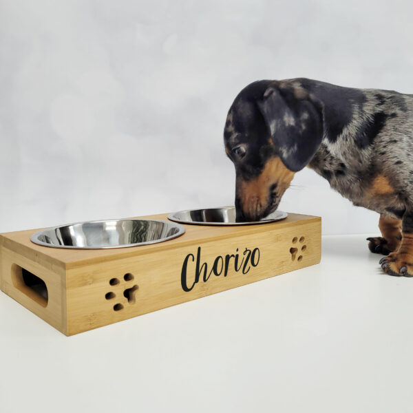 Personalised Bamboo / Stainless Steel Dog Bowl – Script 2
