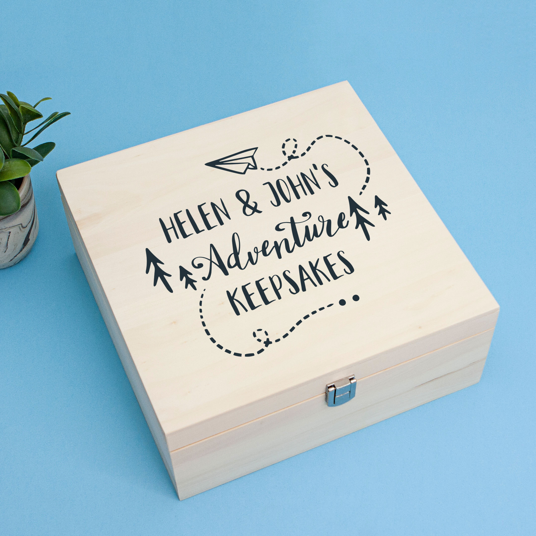 Personalised Natural Pale Wood Square Box – Paper Plane