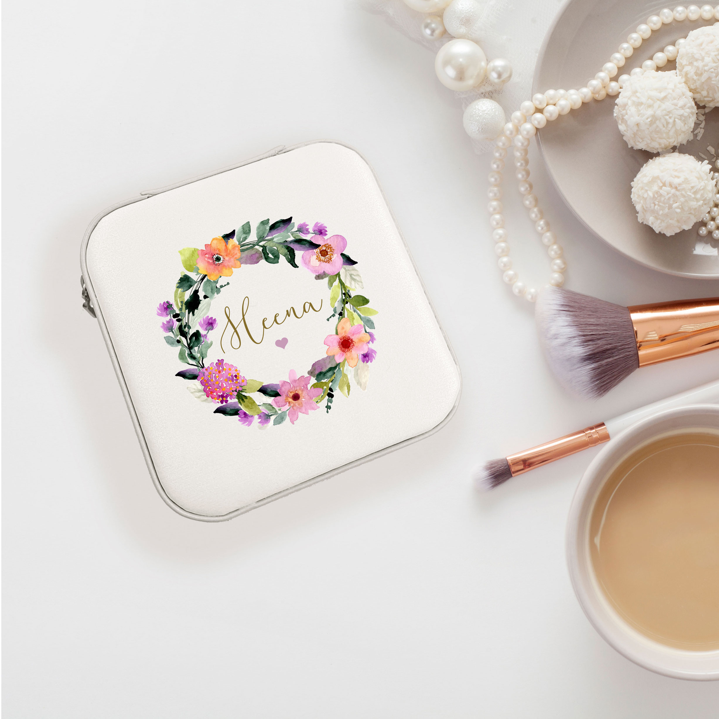 - Personalised Square Floral Wreath Jewellery Case with space for Rings, Earrings and Necklaces